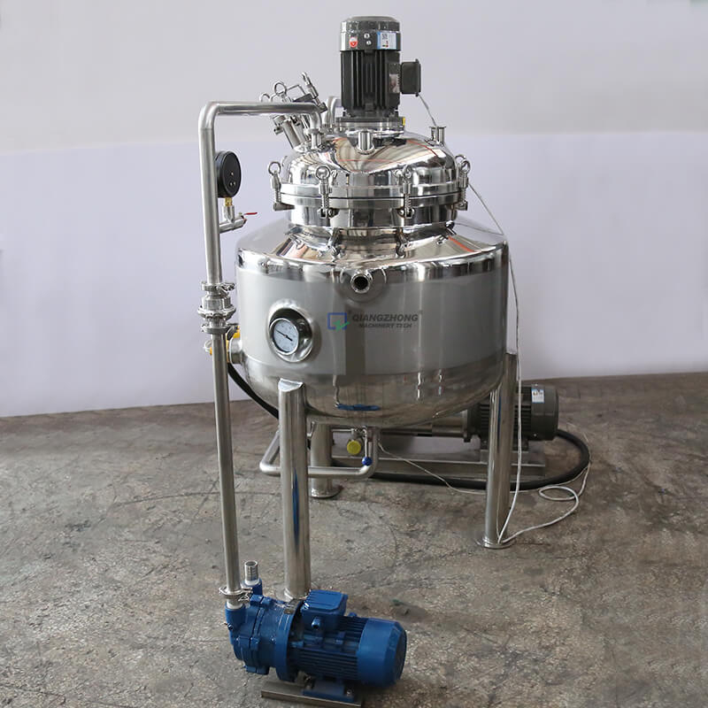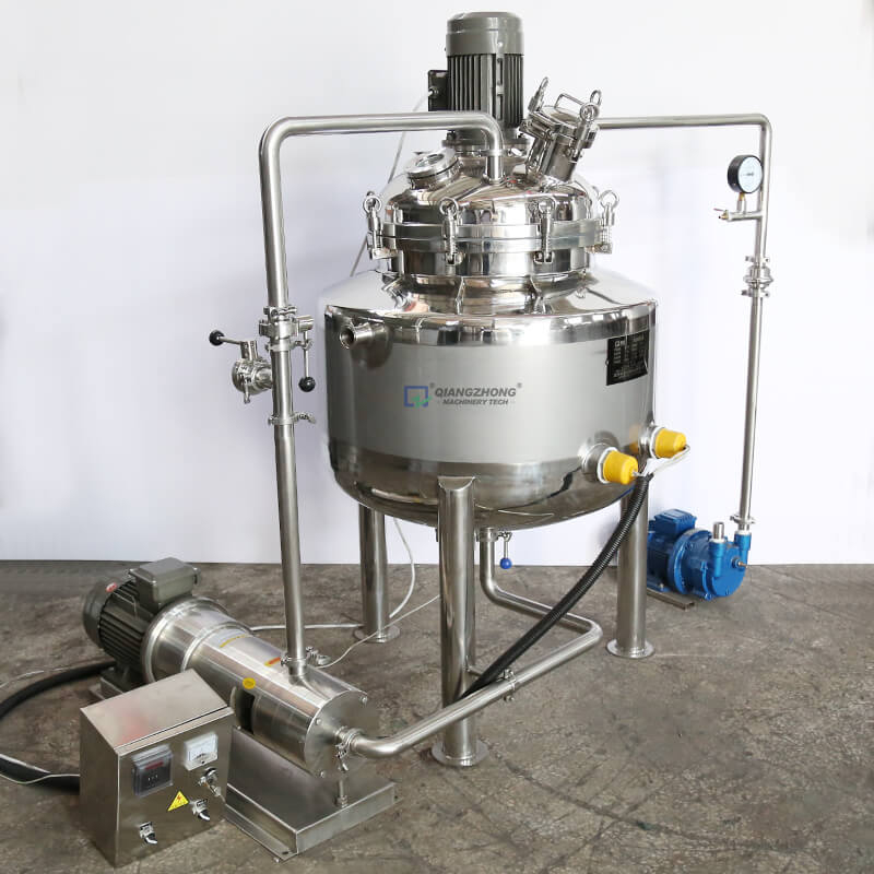 乳化罐是集混合、乳化、均质、溶解、粉碎等功能与一体的设备,目前国内食品、制药、化工等行业最先进的混合设备。乳化罐的作用是将一种或多种物料(水溶性固相、液相或胶状物等)溶于另一种液相,并使其水合成为相对稳定的乳化液。高速乳化头工作时将转子中心的物料高速抛向定子,通过定子的齿间隙,在转子和定子之间通过剪切、碰撞、粉碎而达到乳化的目的,广泛适用于油类、粉类、糖类等。原辅料的乳化混合,某些涂料、油漆乳化分散也使用乳化罐,尤其适用于某些难溶胶状类添加剂,如CMC、黄原胶等。
