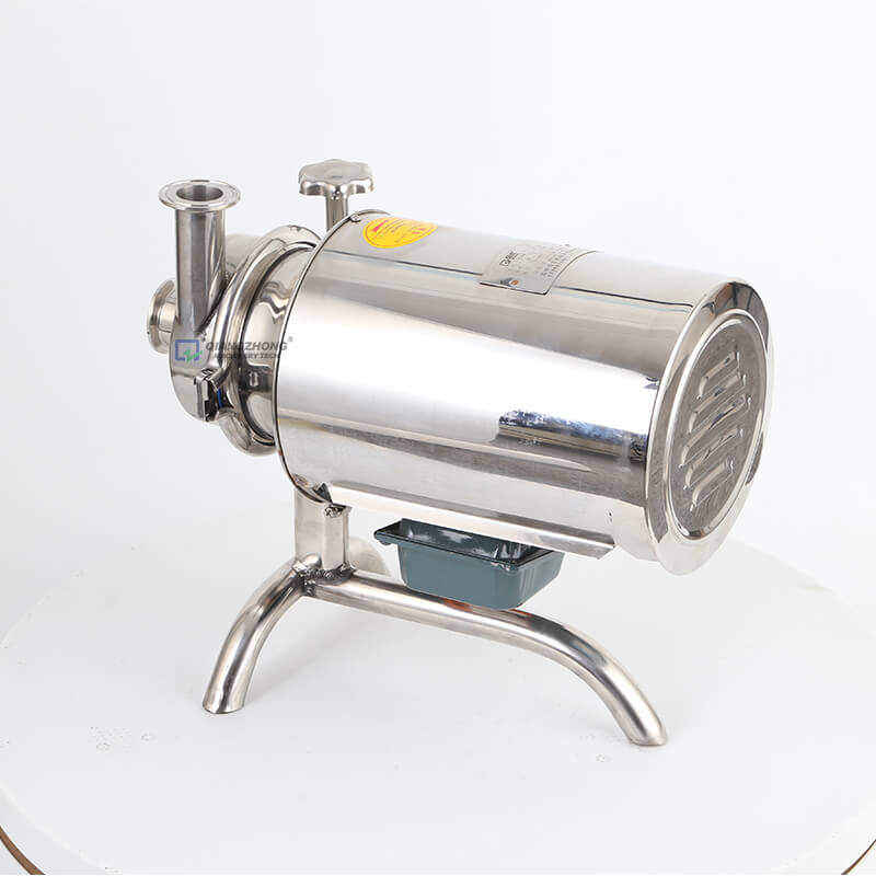 不锈钢卫生泵(又名奶泵、饮料泵)属单级、单吸式卫生泵,适合输送牛奶、饮料、酒等各种液体。它是食品、化工、医药等行业不可缺少的输送设备,特别适合于应用在管式杀菌、酸奶持温设备、CIP清洗等阻力较大的系统中。叶轮安置在泵壳里面,它和泵轴一起旋转,叶轮刀片以动能和压能的形式将能量传达给流体。该泵不可反向旋转,正确的旋转方向是顺时针,从电机后面可看出泵的旋转方向。