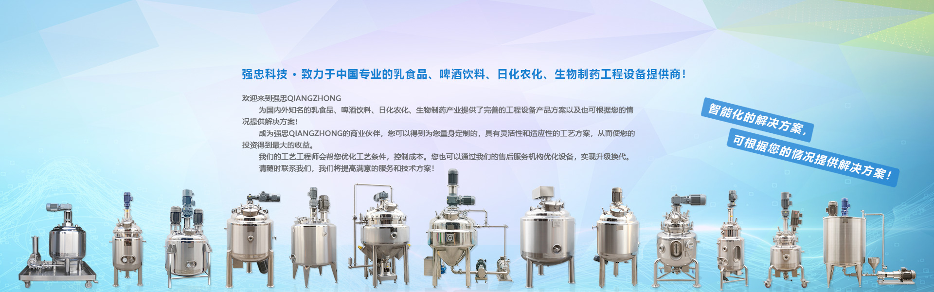 强忠科技致力于中国最专业的乳食品啤酒饮料、日化、农化、生物制药工程设备提供商