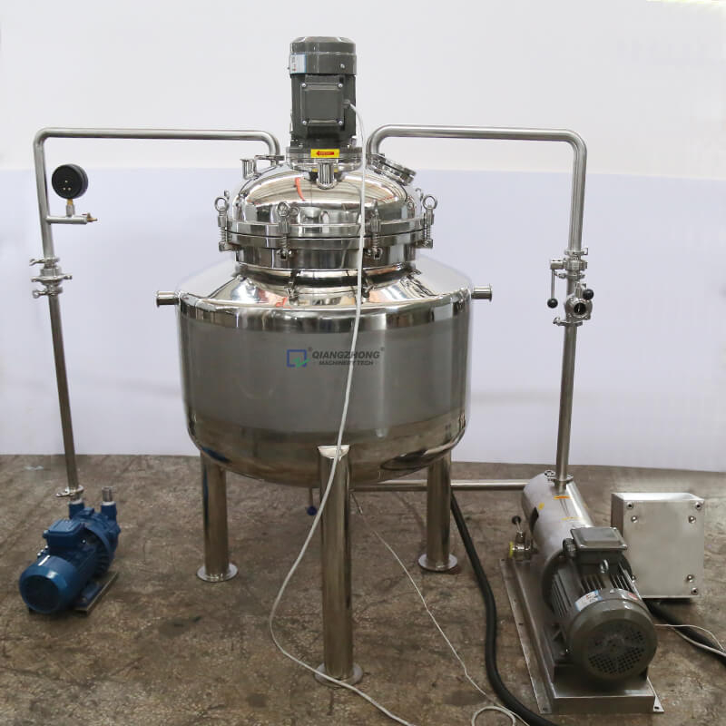 乳化罐是集混合、乳化、均质、溶解、粉碎等功能与一体的设备,目前国内食品、制药、化工等行业最先进的混合设备。乳化罐的作用是将一种或多种物料(水溶性固相、液相或胶状物等)溶于另一种液相,并使其水合成为相对稳定的乳化液。高速乳化头工作时将转子中心的物料高速抛向定子,通过定子的齿间隙,在转子和定子之间通过剪切、碰撞、粉碎而达到乳化的目的,广泛适用于油类、粉类、糖类等。原辅料的乳化混合,某些涂料、油漆乳化分散也使用乳化罐,尤其适用于某些难溶胶状类添加剂,如CMC、黄原胶等。
