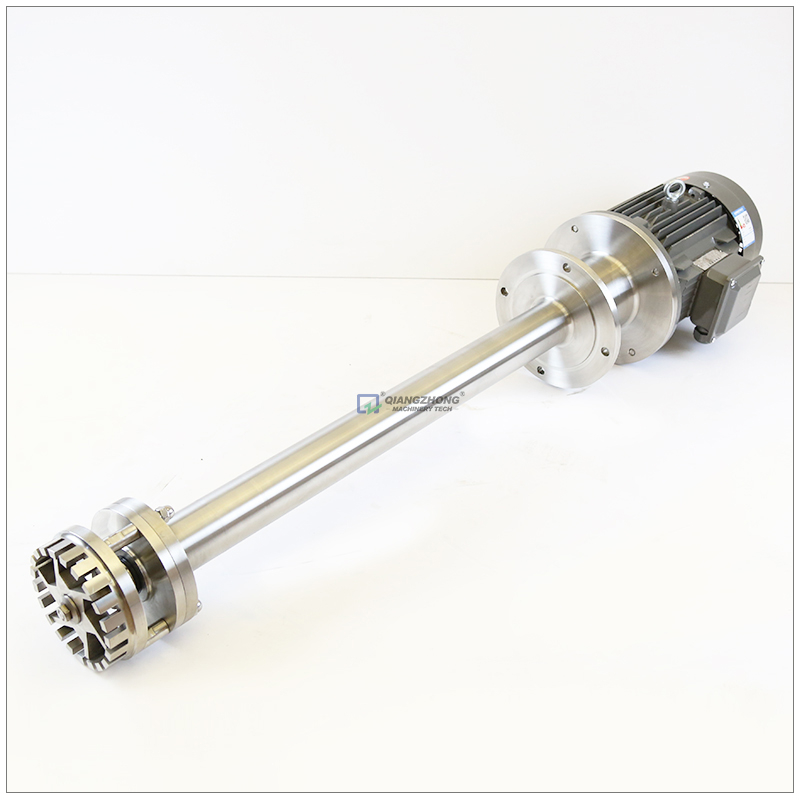 剪切机头采用爪式、双向吸料结构,避免了上部物料难以吸入而造成的死角和漩涡现象,高速旋转的转子产生强劲的剪切力,使剪切率更高,剪切力更强。在转子产生的离心力作用下,将物料从径向甩入定、 转子之间狭窄精密的间隙中,同时受到离心挤压、撞击等作用力,使物料得到充分分散、混合、乳化。