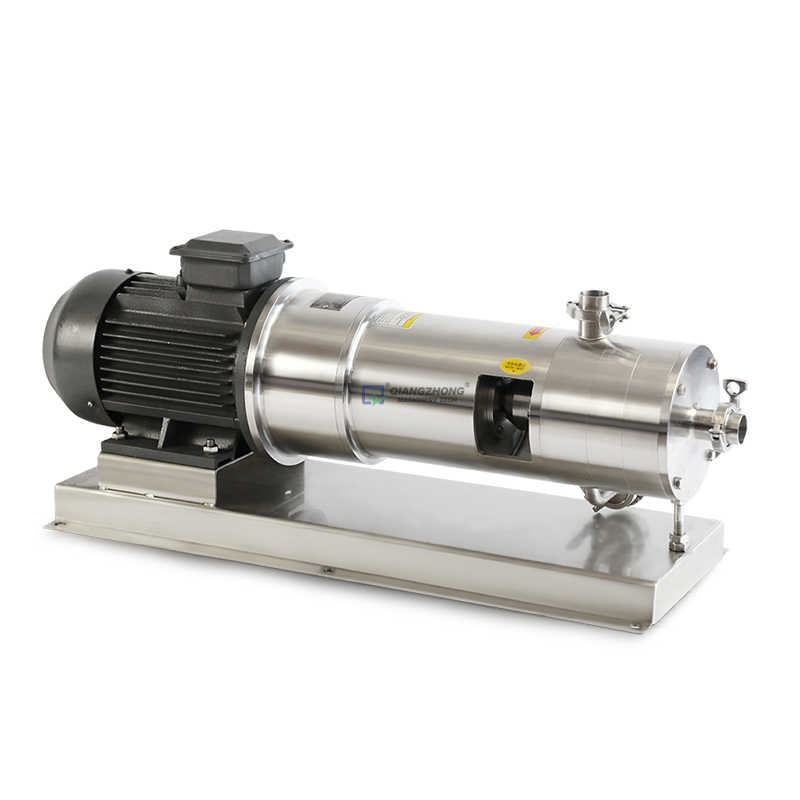 均质乳化泵/管线式高剪切分散乳化机是高效、快速、均匀地将一个相或多个相分布到另一个连续相中,而在通常情况下各个相是互不相溶的。由于转子高速旋转所产生的高切线速度和高频机械效应带来的强劲动能,使物料在定、转子狭窄的间隙中受到强烈的机械及液力剪切、离心挤压、液层摩擦、撞击撕裂和湍流等综合作用,从而使不相溶的固相、液相、气相在相应成熟工艺和适量添加剂的共同作用下,瞬间均匀精细的分散乳化,经过高频的循环往复,最终得到稳定的高品质产品。