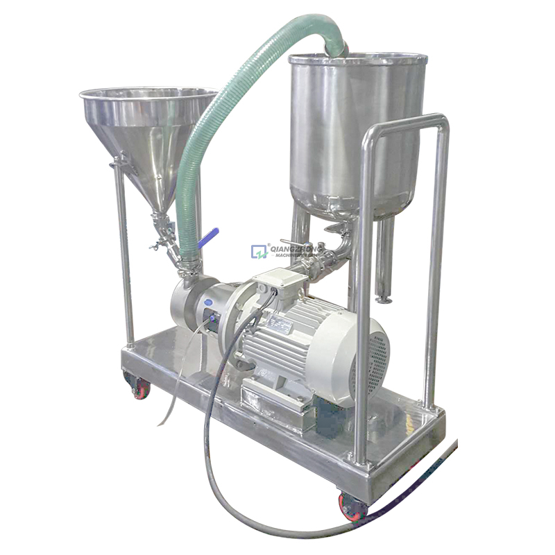 利用特殊转子的高速旋转产生真空,用吸风管把粉末均匀的吸入工作腔,并使其均匀的分布在快速流动的液流中,在液流中粉末被瞬间完全湿润,不产生团聚块状物。由于粉末在一开始就被液流均匀湿润,因此不存在未完全湿润的粉末,也不会在液流的表面、搅拌轴和容器壁上形成结皮现象。而传统工艺易形成硬的结皮。由此可见使用PLM系统能使产品的质量得到很大的提高。粉尘减少的主要原因是真空由液流产生,所有的粉末都毫无遗留地被导入液流中,传统处理工艺中所必须的环保辅助设施在这都将不再需要。